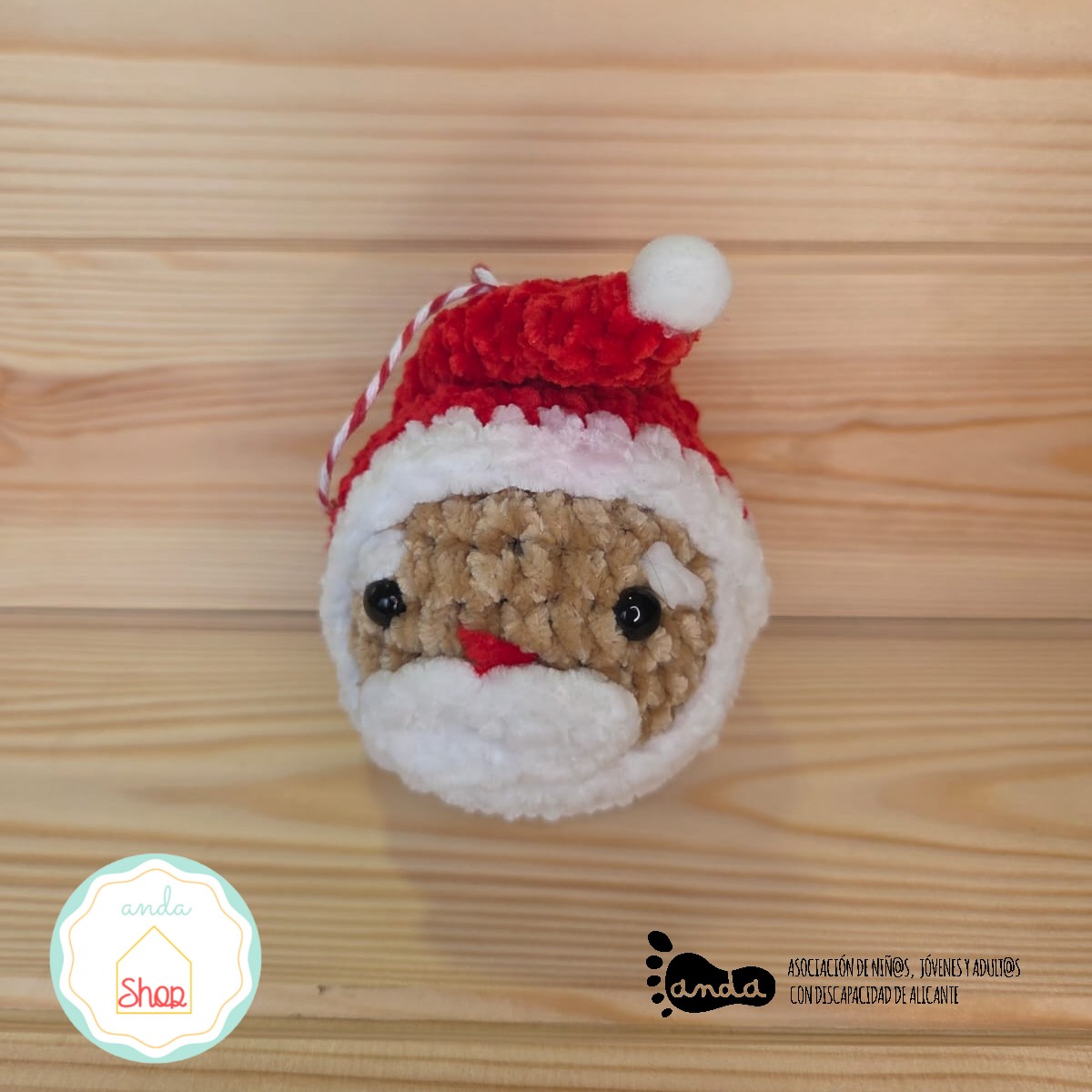 Adorno para el árbol de Navidad. Cada uno de los adornos es único, cambiando la forma, el tamaño, los colores, etc. Están realizados por el grupo de voluntarias de la asociación.