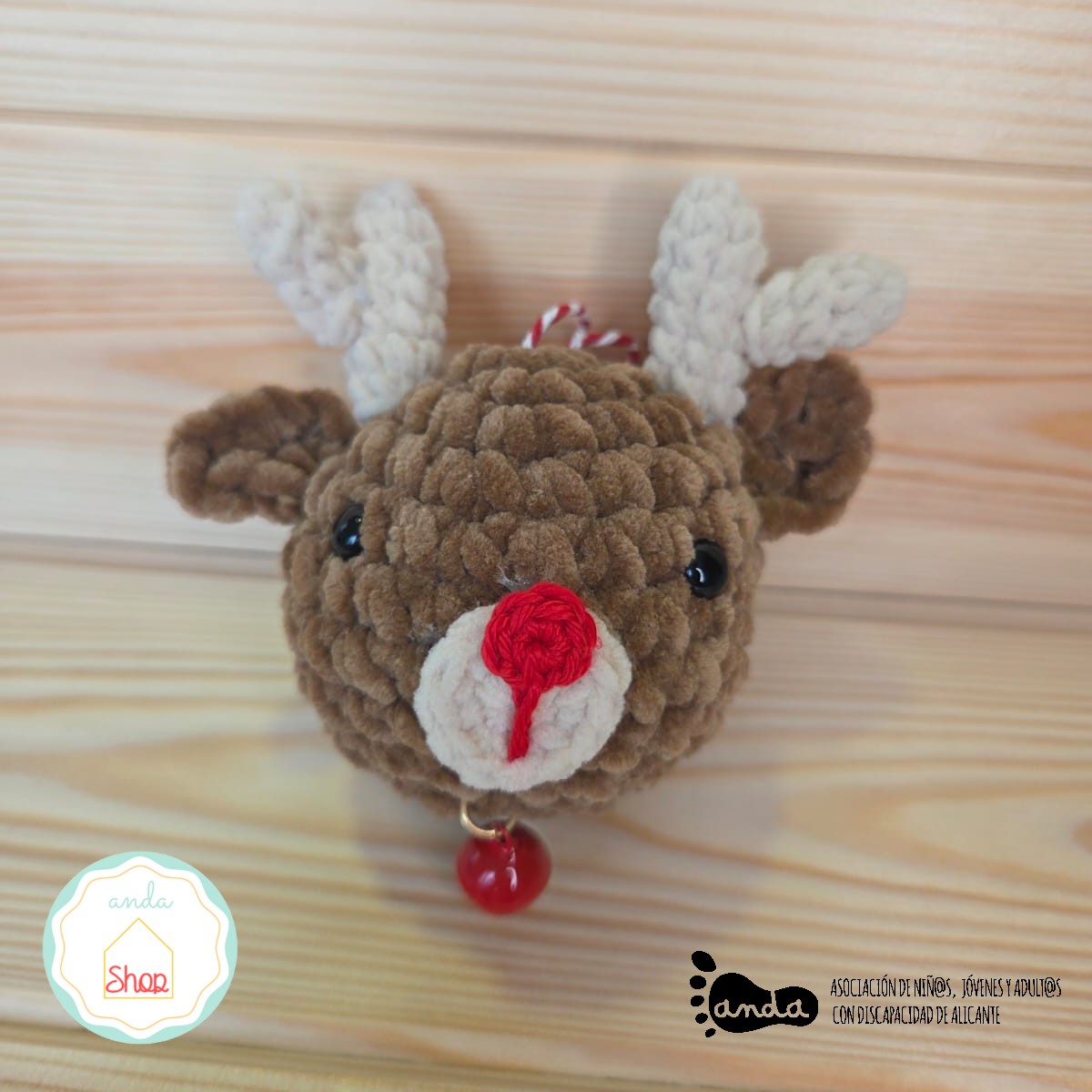 Adorno para el árbol de Navidad. Cada uno de los adornos es único, cambiando la forma, el tamaño, los colores, etc. Están realizados por el grupo de voluntarias de la asociación.